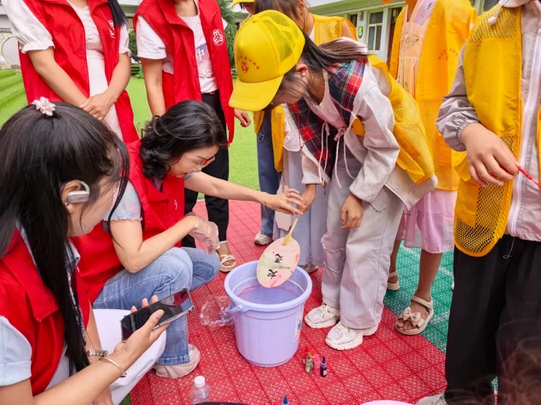 在 第二阶段“爱牵小手·趣启童心”游戏互动环节,爱心妈妈与结对儿童手牵手热情投入,你来比画我来猜,旨在增进双方情感,强化彼此信任与陪伴。合力完成非遗漆扇制作,让儿童感受传统工艺魅力,传承非遗文化;爱心妈妈鼓励孩子们勇敢追梦,孩子们纷纷为扇面添上绚丽色彩,大手与小手共同绘就美好时光,现场洋溢着欢声笑语,温暖的情感在互动中升温。