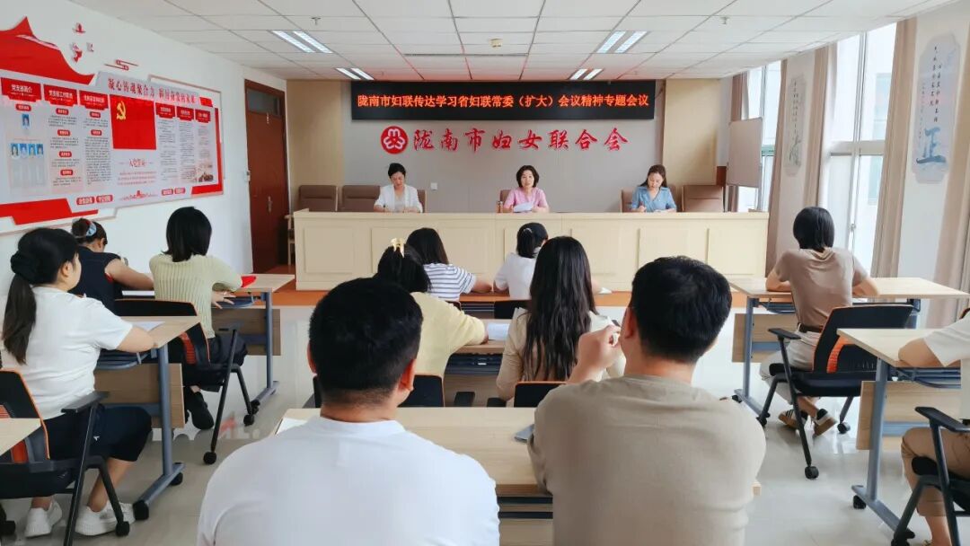 9月3日,陇南市妇联召开专题会议,传达学习省妇联常委(扩大)会议精神,研究落实举措。市妇联党组书记、主席吕红菊主持会议并讲话,全体干部参加会议。