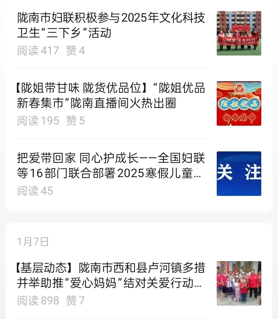 截至目前,“陇南妇女”已拥有粉丝 21264 位,2024年发布信息600余条,2025年以来已发布450余条。这份荣誉属于每一位关注、支持与陪伴我们成长的你!