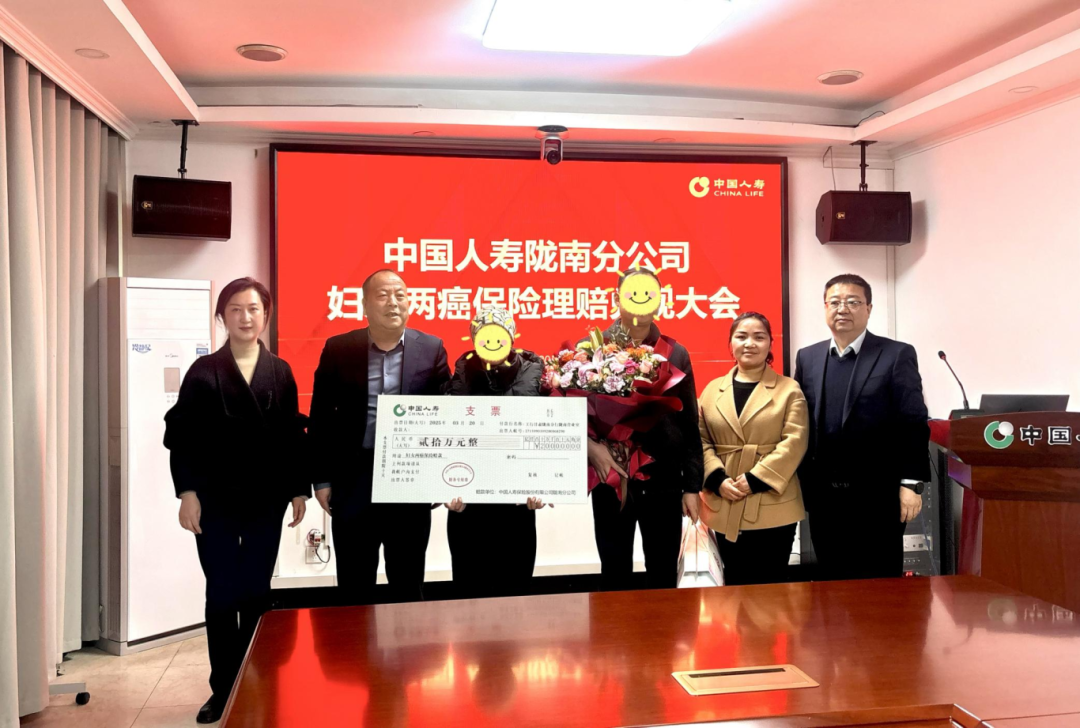 2024年中旬,王女士所在单位为女职工购买了200元妇女“两癌”保险,理赔额度为20万元。2025年1月,王女士不幸确诊乳腺癌后,将资料提交给中国人寿陇南分公司后,仅20个工作日就收到了全额理赔款。这笔钱成了她治疗的“经济后盾”,家属感激的说:“感谢单位和妇联‘娘家人’的关怀,当乳腺癌确诊以后,我们一家人陷入了对经济负担的压力之中,自己因为疾病不知所措,当时,也没有想起单位购买了保险。后来向市妇联求助后,在工作人员指导后才想起单位购买的“两癌”保险,及时和保险公司取得联系后,保险公司第一时间进行了理赔,这20万像及时雨,不仅解决了治疗费的问题,更给了我们生活的希望。也想呼吁更多家庭,给家里姐妹买份‘两癌’保险,添份安心!”