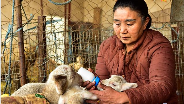 随着气温转暖,肃南县接羔育幼工作已全面展开,这几天,各乡(镇)养殖户迎来接羔育幼的繁忙时节。在康乐镇农牧户的养殖棚圈外,就听到小羊羔“咩咩”的叫声。打开棚圈大门,只见一只只小羊羔活蹦乱跳,正欢快地抢食儿。在康乐镇牧民妥春梅的棚圈里,出生不久的小羊羔正围着母羊吃奶,院子里堆满了一捆一捆的饲草料。妥春梅高兴的说由于准备充分,出生的羔羊成活非常高,这让她家对发展养殖业更加充满了信心。