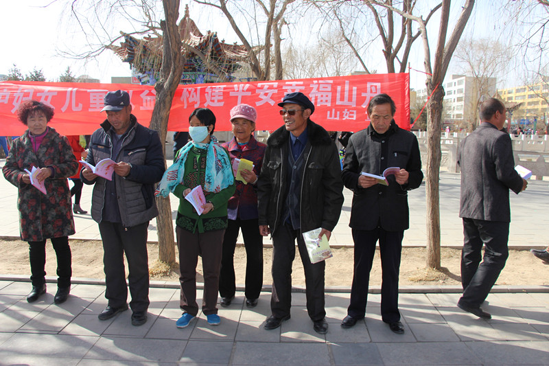 为进一步深化法律宣传和维权服务,切实关注妇女民生,努力营造男女平等的良好社会氛围,三八节期间,山丹县妇联联合宣传部、团县委、公安局等部门单位组织妇联干部、巾帼维权志愿者在县龙首广场广场开展以“维权妇女儿童权益·构建平安幸福山丹”为主题的“三八”维权周法律宣传服务活动。