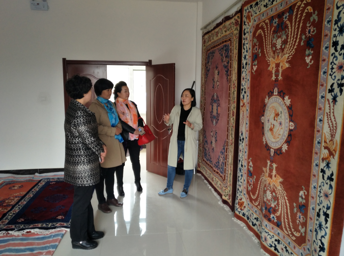座谈会结束后,王主席一行又实地走访了“陇原巧手”示范基地肃南县尧熬尔原生态文化传承有限责任公司和富达民族服饰有限责任公司以及“妇字号基地”肃南县华鑫民族地毯厂。王主席耐心的听取了她们的创业经历,并细心的对今后如何发展给予了执导和建议,使几个女企业家受益匪浅。