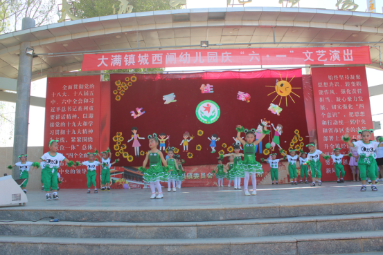 以迎接党的十九大召开为重要契机,为教育引导全镇儿童热爱党、热爱祖国,引领广大儿童听党话、跟党走6月1日,镇妇联、团委、镇党政办、文化站积极配合大满镇城西闸小学组织开展“红领巾.心向党,喜迎十九大,我向习爷爷说句心里话”为主题庆“六一”校园艺术节文艺表演。孩子们用歌声和舞蹈表达喜悦心情,用满载着童年憧憬的图画,描绘出心中的梦想,度过了一个别样的“六一”国际儿童节。(大满镇 贾莉芝)