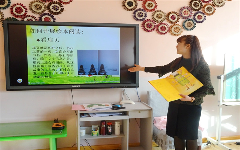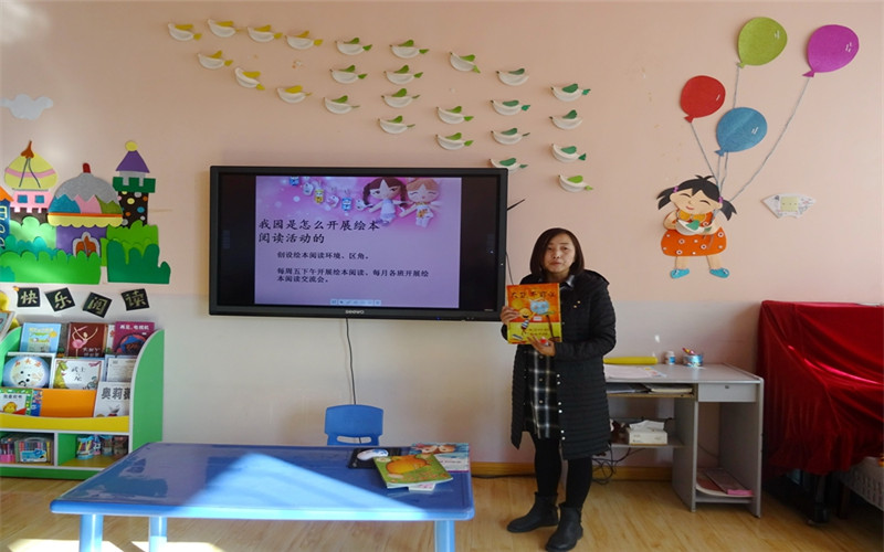 活动分为三个部分:一是开展教师绘本专题讲座,带领家长走进绘本世界。讲座中,各班老师从什么是绘本、为什么要读绘本、我园开展绘本阅读的情况及家长如何进行亲子阅读指导等方面为家长带来了一场精彩的讲座。同时,与家长分享了优秀绘本书籍,用生动的实例诠释了亲子阅读的重要性。使家长们知道看似简单的绘本故事,不只是将文字读给孩子听,需要从语言、社会、科学等不同角度去解读、探讨其内涵,更要从孩子的角度去看书、品书,在阅读中发现,在阅读中明理,在阅读中成长。
