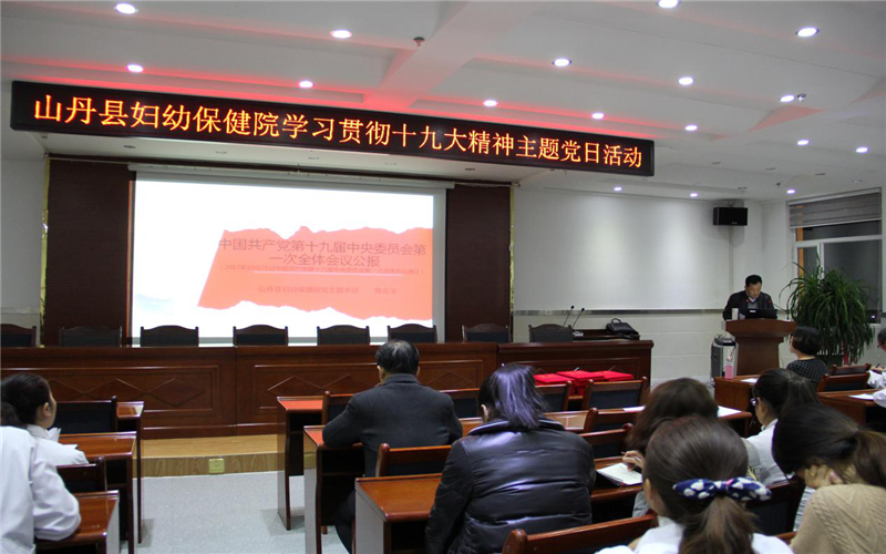 11月13日,山丹县妇幼保健院组织全员职工开展学习十九大精神主题党日活动,活动由副院长胡爱华同志主持,由陈院长领学了《新党章修改部分的解读》、《中国共产党第十九届中央委员会第一次全体会议公报》《学思践悟,以十九大精神为指导,开创妇幼保健工作新局面》,学习结束后分别让王莉、田永华、王海燕等人就学习十九大精神作出发言。