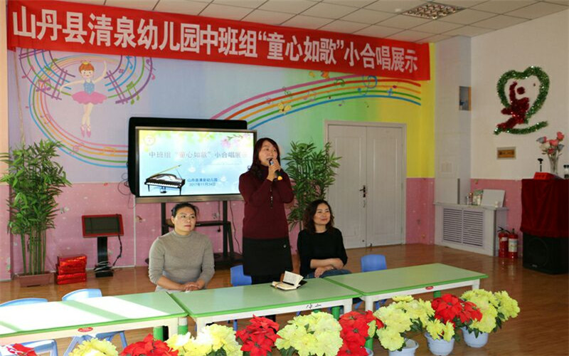 音乐是灵动的的语言、多彩的图画、生命的律动,有音乐相伴的生命开端会更丰富、更富有创造力和想象力。为了将幼儿引入五彩缤纷的音乐世界,让孩子们在美的艺术熏陶中体验和成长,11月24日下午,山丹县清泉幼儿园妇委会组织开展了中班组“童心如歌”小合唱展示活动。