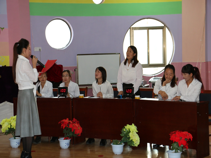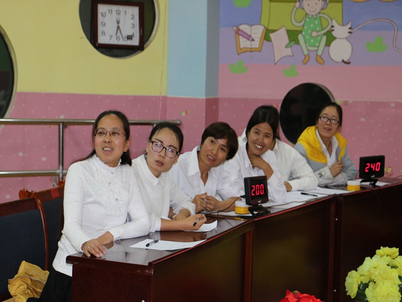 下午四点钟竞赛活动准时开始,首先由活动负责领导武桂香主任向在座的领导、老师汇报此次活动的目的意义,接着,主持人赵巧梅老师依次介绍各队的参赛队员、宣布赛场纪律、介绍比赛流程,最后在观众们热切的期盼和场上选手紧张与激动交错的眼神中,主持人大声宣布“山丹县清泉幼儿园巾帼心向党 建功新时代教师保育知识竞赛”开始!