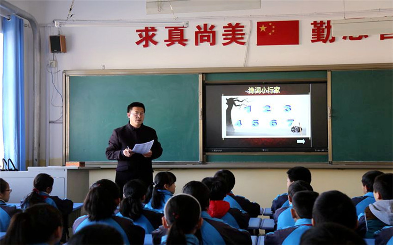 “一诵”PK赛以班级为单位,学校成立评委组由各年级分管领导带领到各班级现场测试评分。比赛分为“诗词小行家”“诗词小擂主”和“中华好诗词”三个环节。前两个环节是对学生们对古诗词记忆的考查,第三环节是各班级孩子们对古诗文诵读中韵味的把握和体会。各班级比赛现场气氛热烈,参赛选手个个精神饱满,声情并茂。孩子们用真挚的情感,以表演诵、配乐诵 、诗组合、情境诵等多种形式表现了诗文的内涵,或激昂高亢,或抑扬顿挫,表达了对祖国、对人民、对家乡、对亲人深深的爱。