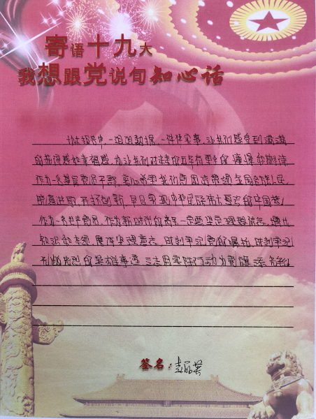 “曾经,你再风雨飘摇中背负起民族独立复兴的重任,用鲜血洗涤了岁月的斑驳,解救了处于深重灾难的中国人民。如今,你在和平年代带领着中国人民走向富裕,用改革春风吹绿满目青葱,让和谐之歌响彻华夏苍穹。作为一名共产党员,我们将积极响应您的号召,为祖国的明天贡献自己的力量!相信我们国家的明天将会更加辉煌!”财政所干部李韦怡写到。