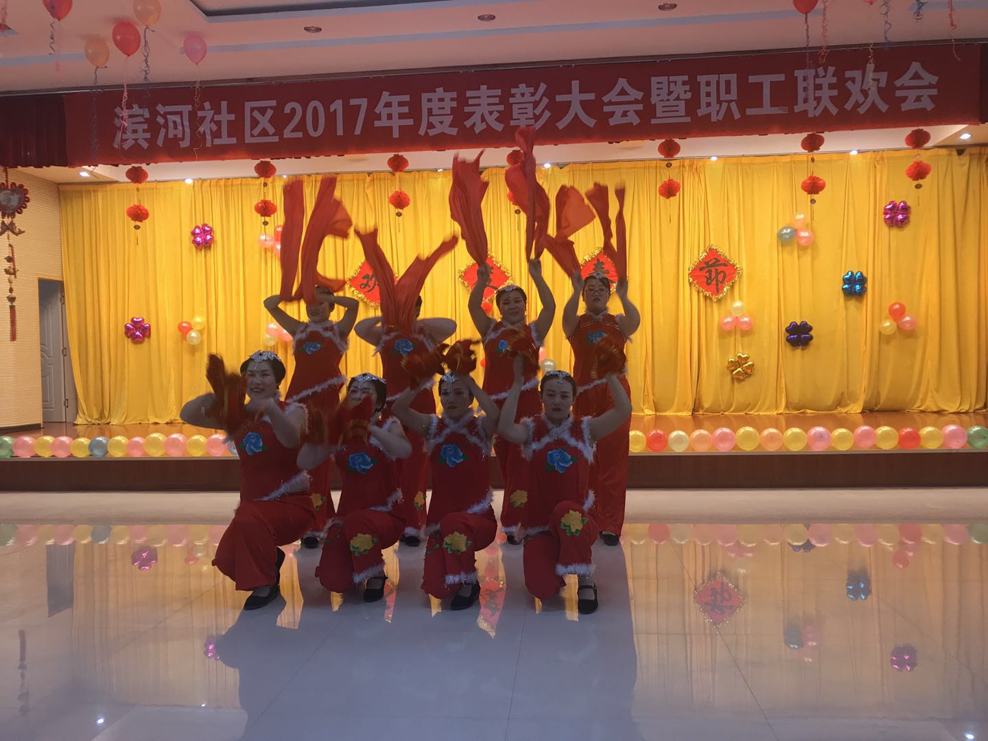 表彰会上,社区党总支书记向全体人员致以祝贺,祝福大家新春快乐,幸福安康!同时勉励获奖集体和个人珍惜荣誉,再接再厉,继续发挥先锋模范和带头示范作用;呼吁社区居民向典型学习,着力培育新民风、倡导新风尚、创造新生活。联欢会节目异彩纷繁,有巾帼志愿者选送的舞蹈《开门红》《舞动中国》、接地气的三句半《夸社保》、诗朗诵《盛世中国》,有党员居民带来的经典歌曲《草原上升起不落的太阳》以及辖区青少年带来的萨克斯《月半小夜曲》、葫芦丝《远走高飞》等12个文艺节目,现场热闹非凡,台上歌声不断、台下掌声常鸣,歌声、掌声、笑声始终充满整个会场。