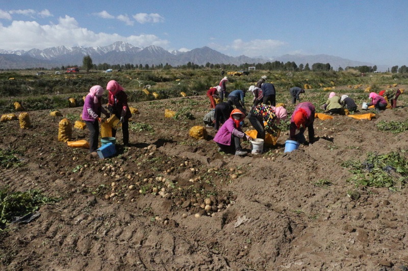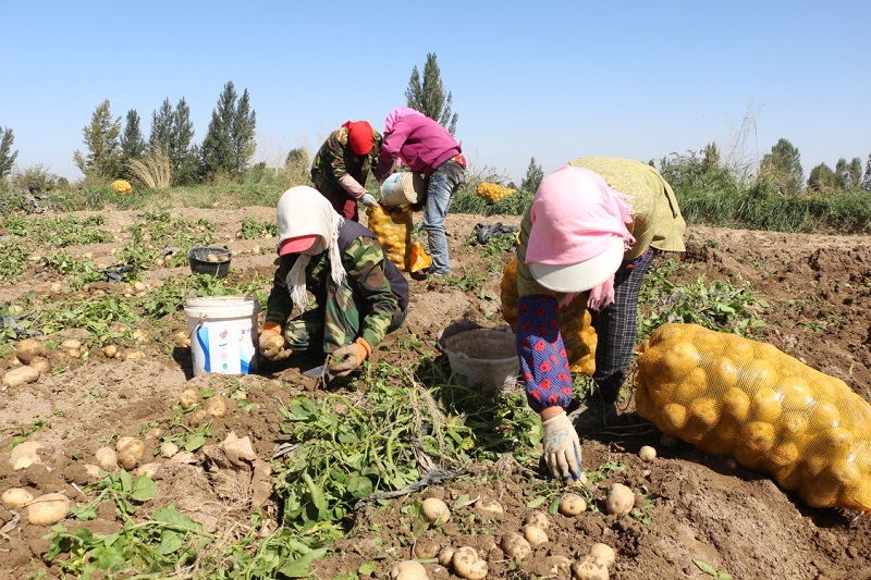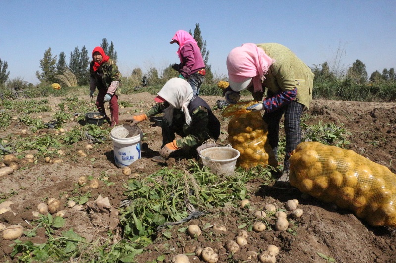 今年,该镇结合“农户+基地+专业合作社”的发展路子,粮食播种面积10.5万亩,其中马铃薯、蔬菜花卉等特色种植7.17万亩,蔬菜花卉制种及马铃薯秋收工作正在紧张有序进行。如今,一群按“钟点工”计酬劳动的妇女涌现在田间地头,走进田间地头,随处可见三五成群的妇女忙碌的身影,有效地解决了秋收农忙时节农村劳动力不足的问题,也成了今年秋季生产的一支生力军。