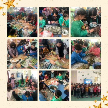 活动当天,孩子们、家长们兴高采烈,乐此不疲。幼儿园温馨祥和的气氛感染着每一个人。小班的孩子们在老师的引导下感受了妈妈和奶奶的辛苦,接着又为妈妈奶奶们演唱了歌曲《世上只有妈妈好》《我有一个好妈妈》,还与妈妈奶奶们一起做亲子游戏。中班的孩子们用粉粉的胭脂、暖暖的口红为自己的妈妈化一个美美的妆,让妈妈们变得更加的美丽。大班的孩子们则早早的和妈妈奶奶们就来到幼儿园,准备了丰富的食材,进行亲子包饺子活动。妈妈奶奶们分工明确,你和面,她拌饺子馅,擀皮的擀皮,包饺子的包饺子,宝贝们也学着给他们帮忙。最后,饺子出锅,宝贝和妈妈奶奶们一起分享了这充满爱意的饺子。