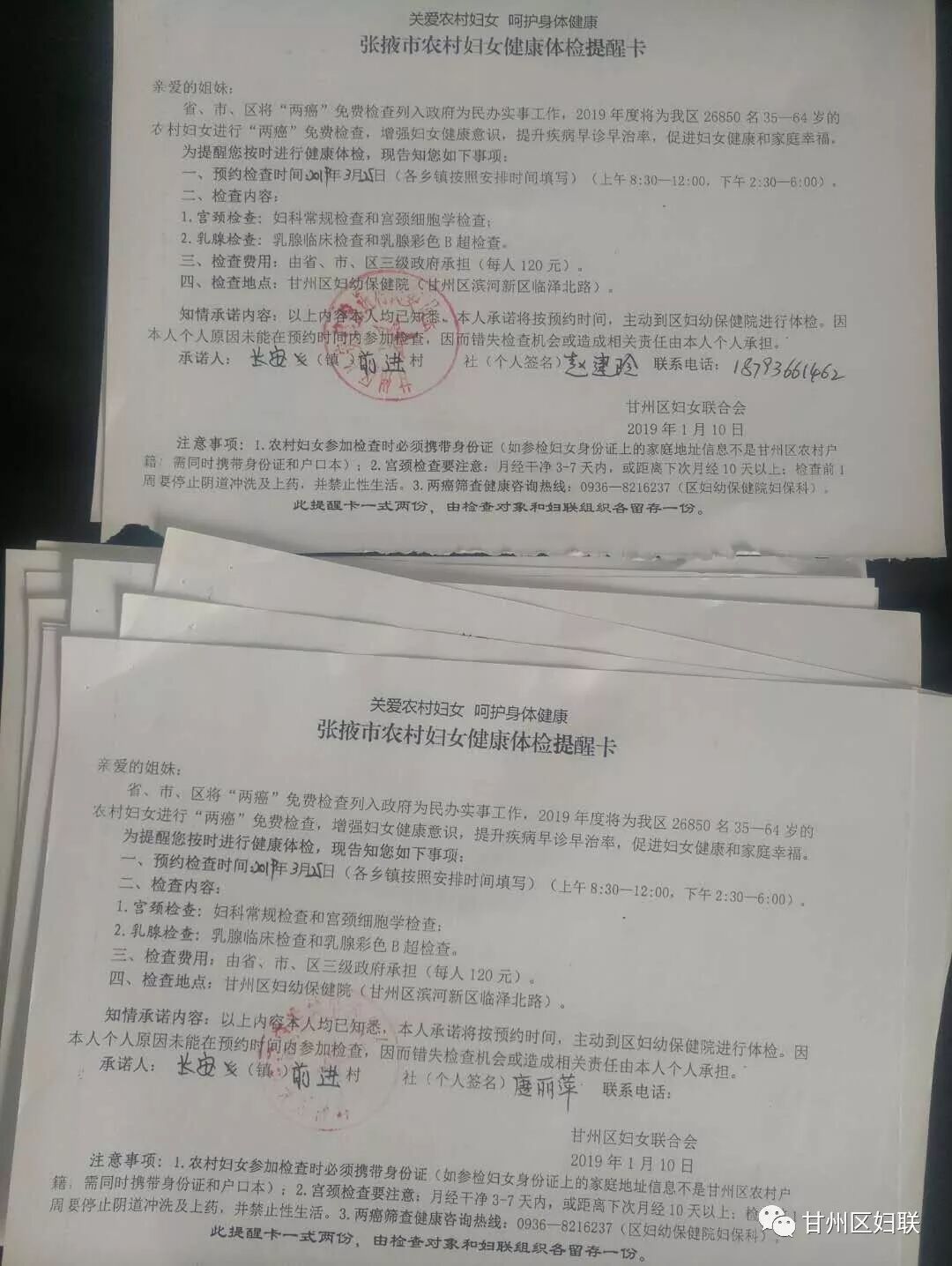 今年上半年,甘州区妇联、卫生健康局、财政局等相关部门和各乡镇人民政府加强协作配合,采取“召开工作会安排部署推进,上门走访、悬挂横幅、微信群推送、发放健康体检提醒卡等形式宣传发动,举办女性健康节活动和健康知识讲座、义诊等增强妇女健康意识,各乡镇人民政府统一组织参检,医疗检查机构严格检查,质控专家组及时质控,区妇儿工委办公室及时跟进、督促核实工作进展情况、统筹协调相关问题”等有效措施,认真实施农村妇女“两癌”免费检查项目,将这件政府为民办的实事真正办好办实。 全区各级各相关部门共开展宣传238场(次)、18070人(次),针对卫生、计生工作人员及妇联干部开展培训71场(次)、7350人(次),为27000余名适龄妇女发放健康体检提醒卡。至目前,已为12651名农村适龄妇女进行了宫颈癌和乳腺癌免费筛查(其中,确诊宫颈癌3例、乳腺癌7例),已完成全年任务的73.38%。 区妇联积极争取党政支持和社会帮扶,整合资金39.4万元,慰问救助贫困“两癌”患病妇女79名,帮她们树立战胜病魔的决心和生活信心,共享幸福生活。 自2018年实施农村妇女“两癌”检查项目以来,已为我区36451名农村适龄妇女开展了检查,广大农村妇女健康知识知晓率逐步提高,自我保健意识和追求健康美好生活的理念进一步增强。 我区2019年农村妇女“两癌”检查工作已完成全年检查任务的73.38%,已接近尾声,亲爱的姐妹,你检查了吗?