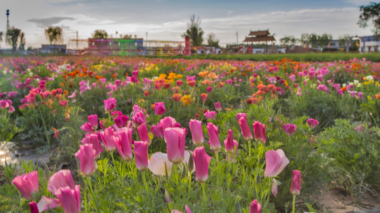 甘州区长安镇前进村百亩花海花盛开