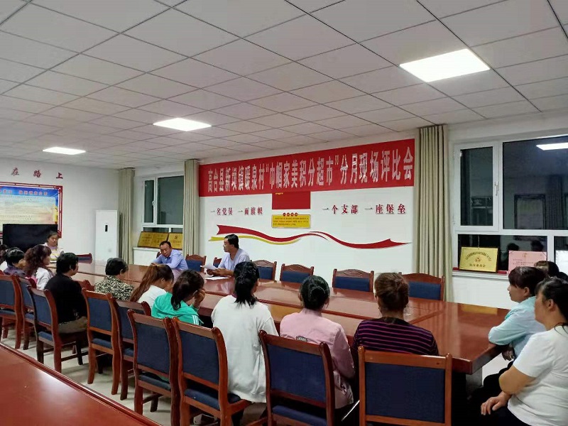 为进一步推进“巾帼家美积分超市”建设工作取得实效,确保“巾帼家美积分超市”科学化、规范化、制度化运行。近日,高台县新坝镇暖泉村组织村“三委”成员、村妇主席、执委、妇女代表召开分月现场评比会。