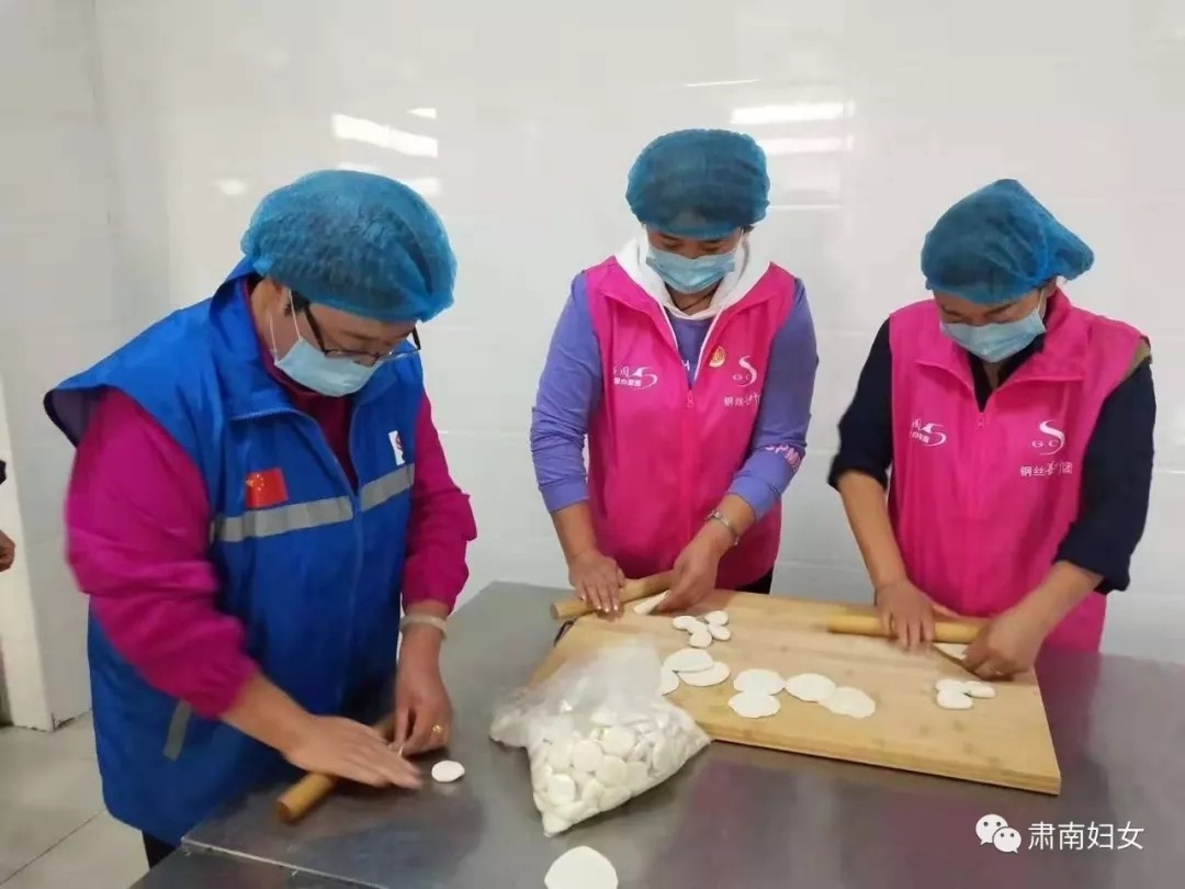 裕固爱心家园志愿者深入敬老院为老人送去重阳节的问候,志愿者为老人们包饺子,大家分工明确,有的在拌陷、和面、擀饺子皮,包饺子,有的则在一旁陪老人们唠唠家常,详细了解老人们的生活和健康状况。