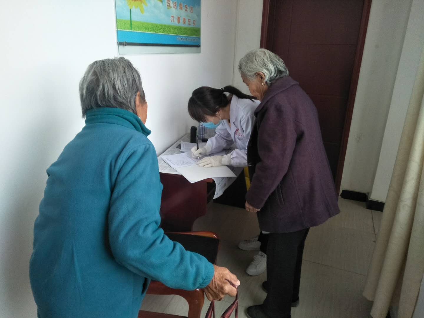 为了进一步提高广大妇女群众健康水平,关爱女性健康。近日,南华镇智号村巾帼志愿者会同南华卫生院医生为村内60岁以上老龄妇女、建档立卡妇女进行免费体检。体检现场,巾帼志愿者们为她们填写体检表,打印体检资料,群众们询问各种疾病知识,志愿者们都逐一耐心解答,一边询问他们生活习惯,一边细心的做好记录。志愿者们为老人查看疾病的同时,也注重她们的疏解心理压力,随后送上温馨的关怀,让一些独居、儿女不在身边的老人得到了心灵的慰藉。