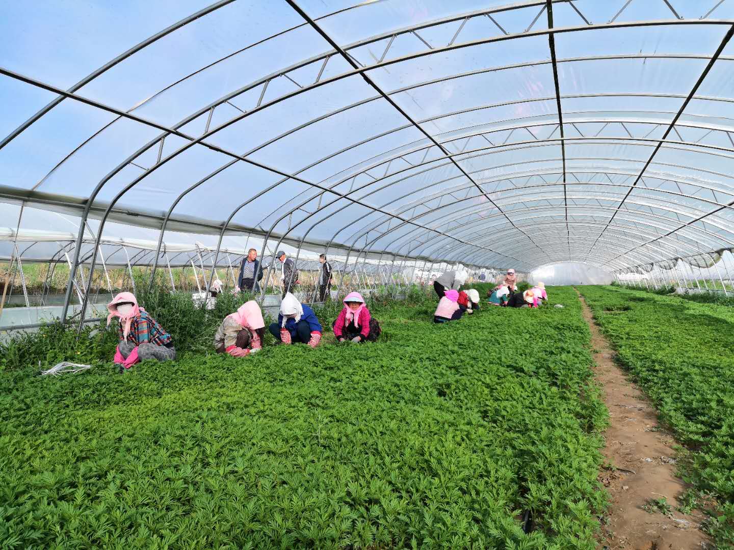 近日,在安阳乡金王庄村扶贫产业设施农业大棚内,来自全村30余名妇女正在移植菊花苗木。“现在国家政策好,不仅土地流转了,也不用去外面打工,在家门口就能挣到钱”金王庄村妇联主席周燕笑着说。