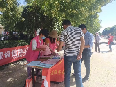 8月24日,山丹县妇联在龙首广场开展以“弘扬诚信文化,建设信用山丹”为主题的诚信文化集中宣传活动。