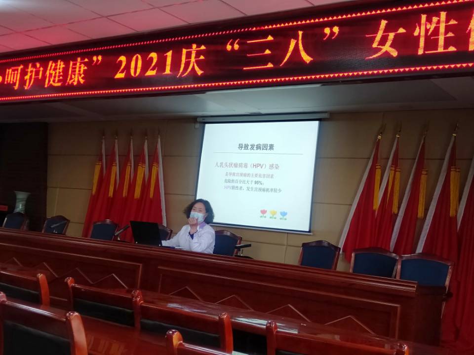 本次活动邀请了张掖市安贞妇产医院妇科主任(原甘州区妇幼保健院妇产科主任)陈翠香,大家做“两癌”防治健康知识讲座。陈主任结合自己多年的从医经验,利用PPT演示文稿通俗易懂地向妇女们阐述了“两癌”的临床表现、防治手段以及自检的方法,并呼吁大家积极参与两癌筛查,告知应当做到早发现,早治疗,以科学的态让度来认识妇科疾病。