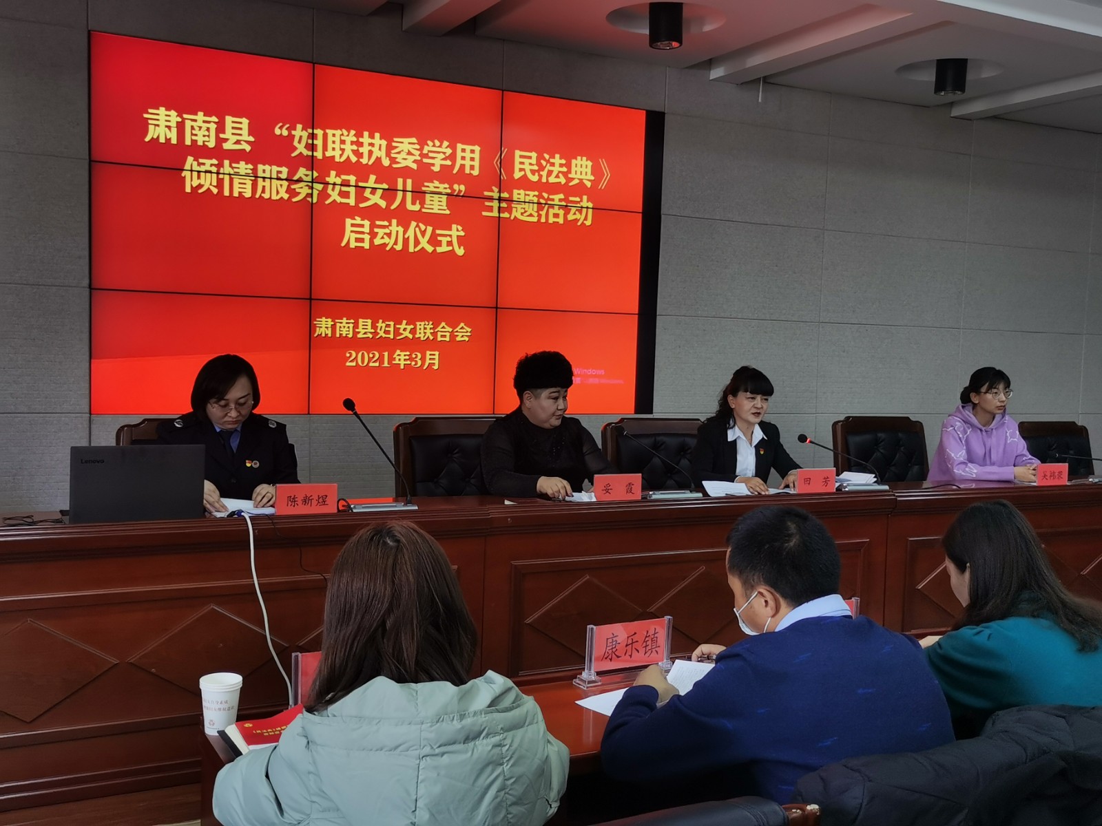在第111个“三八”国际劳动妇女节即将到来之际,3月3日下午,肃南县妇联以“三八”维权周为契机,在县水务局四楼会议室举行了肃南县“妇联执委学用《民法典》·倾情服务妇女儿童”主题活动启动仪式。县妇联全体干部职工,县妇联十三届执委,各乡镇妇联主席、副主席,县直及省市驻肃各部门单位妇女组织负责人以及部分村、社区妇联主席参加了启动仪式。