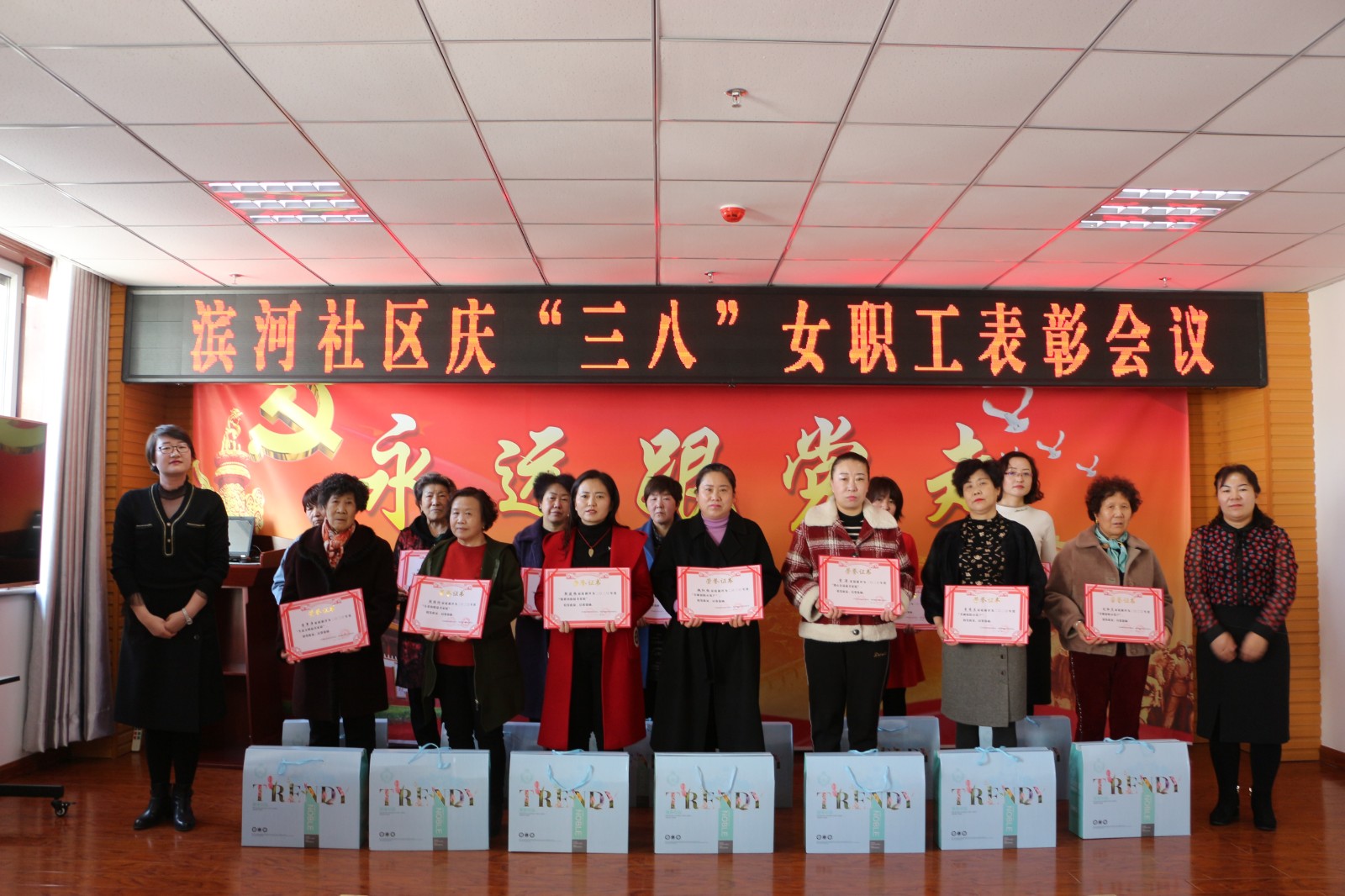 选先进、树典型,展巾帼风采。为进一步在社区营造尊重妇女、支持妇女、关爱妇女的良好氛围,滨河社区开展庆“三八”妇女节表彰大会。会议表彰了“生态文明最美家庭”、“夫妻和美最美家庭”、“情系国防最美家庭”、“热心公益最美家庭”、“民族团结最美家庭”、“最美巾帼志愿者”、“美丽庭院示范户”等在社区建设和服务工程中涌现出的妇女同胞。通过此次表彰,号召社区妇女同胞,为促进家庭和睦、邻里和善、社区和美、社会和谐贡献力量,展示了滨河社区半边天蓬勃向上的风采。