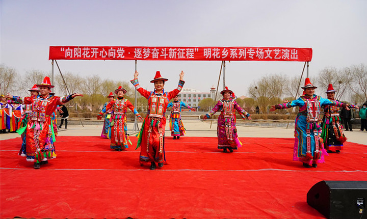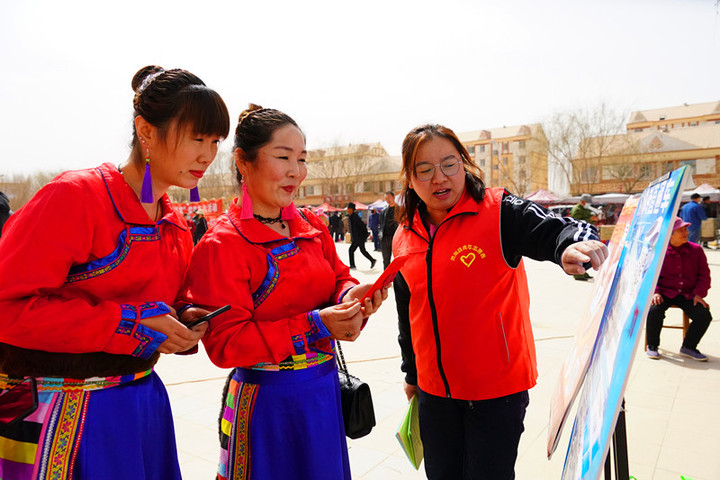 活动在舞蹈《裕固欢歌》中拉开了序幕。一段段舞蹈表演以优美的舞步、灵活的动作展示了妇女群众生活的美满幸福;一首首歌曲以动感的旋律、铿锵的节奏体现了妇女同胞欢愉的心情。文艺表演穿插政策宣传、利用此次机会,乡政府妇女干部通过悬挂横幅、设立咨询点、摆放展板、发放宣传资料等多种形式,深入开展新冠肺炎疫苗接种、民法典、医疗、科技知识宣传普及,把先进文化、实用科技、各类惠农政策信息“打包”送到了群众家门口。更有集市活动活跃了现场的气氛,增强了宣传的氛围,活动现场很是热闹。