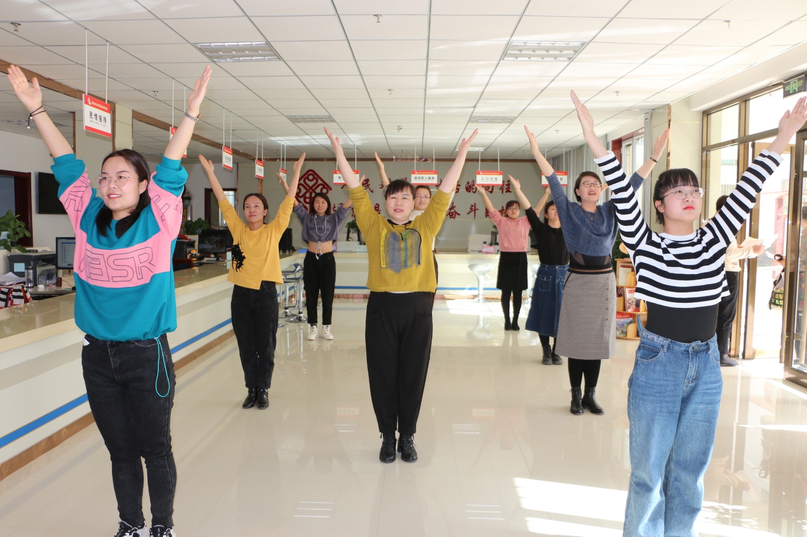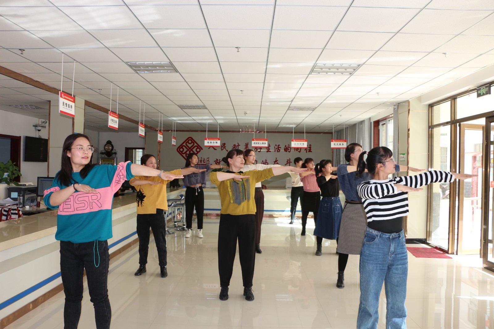 社区实行工间操活动常态机制,每天上午十点,下午四点,伴随着《第九套广播体操》音乐的响起,全体巾帼文明岗成员纷纷走出办公区,跟随音乐的节奏,时而挥臂,时而踢腿,时而跳跃,英姿飒爽地展示着工间操的风貌,更展示着她们积极向上的精神面貌。大家纷纷表示,做工间操不仅能锻炼身体、强健体魄,而且能以更饱满的热情投入到一天的工作中去,为辖区妇女群众提高根据高效优质的服务。
