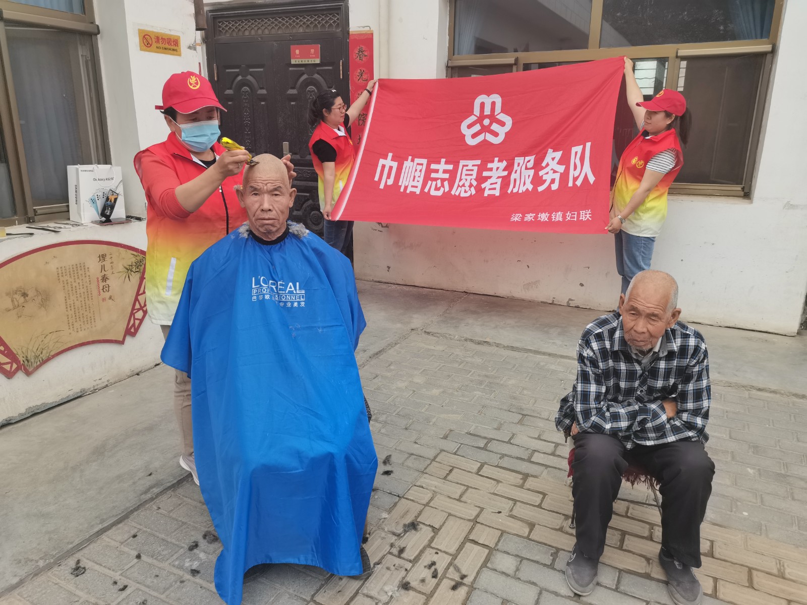 6月10日下午,甘州区梁家墩镇妇联联合镇民政办、团委,组织巾帼志愿者来到镇敬老院为数十名老人开展“爱心理发”活动。