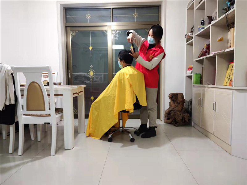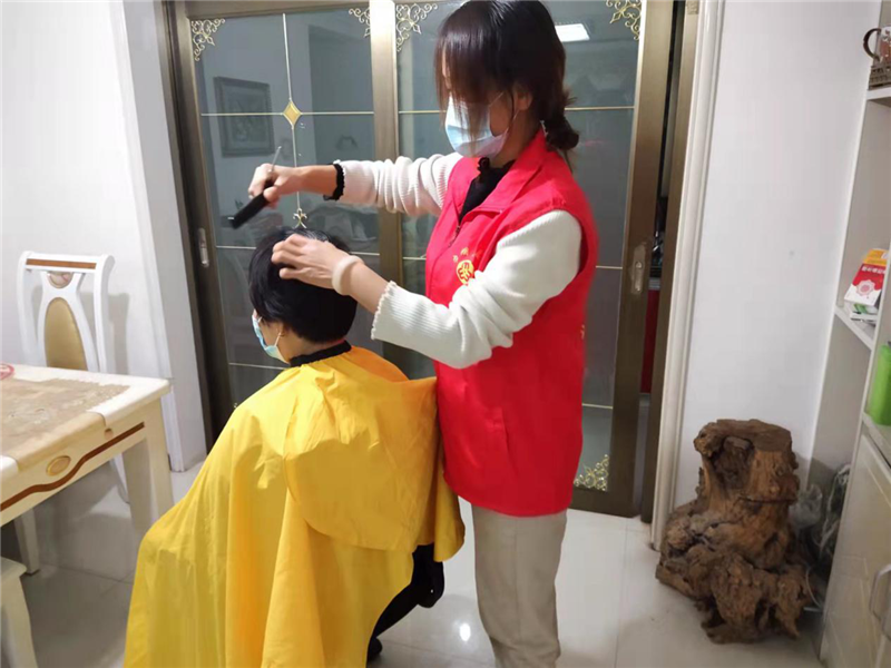 妻子吴水莲因为疫情暂时关闭了店面,宅在家的她依然没有闲着,总想着为抗击疫情尽自己的一份力。她拿起自己的老本行,在做好防护的前提下,为疫情期间不方便外出的叔叔阿姨免费理发,通过电话与留守老人唠唠家常,询问他们的身体状况,并及时给予他们心理的安慰和疏导。同时,她和丈夫向建康村捐款500元用于疫情防控,希望这些钱能为奋战在一线的人提供点物资。