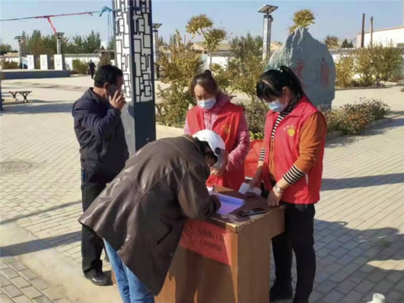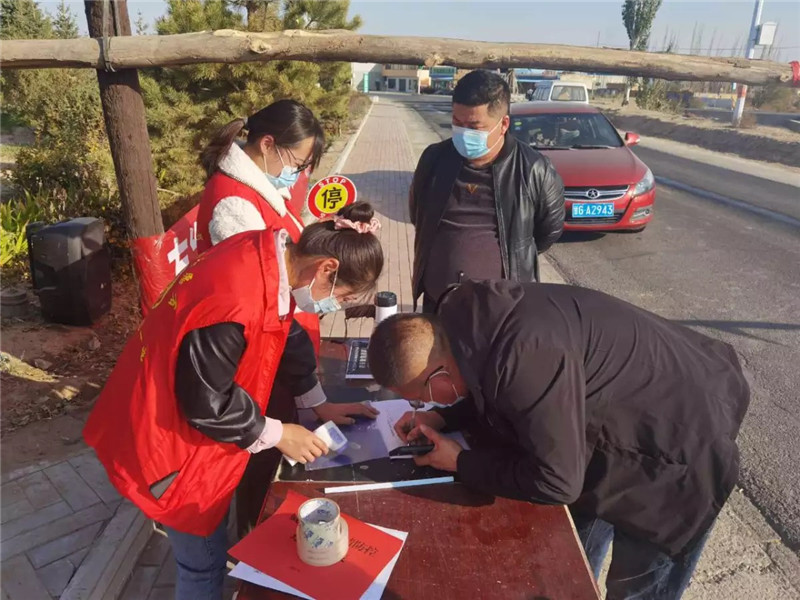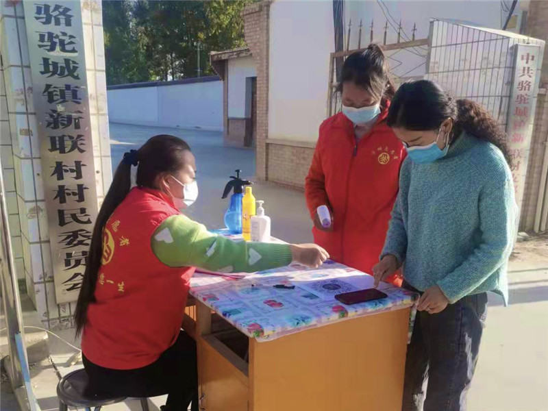 在各疫情防控检测卡口,志愿者带头对过往车辆进行检查,按照工作流程,对进入骆驼城镇的人员逐一进行测温扫码、信息登记,做到不漏一车、不漏一人。检查过程中,对中高风险区和确诊病例发生地区来高车辆人员原则上进行劝返,确需进入的,需查验48小时内核酸检测阴性证明,对其他低风险区来高车辆人员,需查验健康码、行程卡,从源头把牢疫情防控第一道防线。对已发现的密切接触者实行居家检测,巾帼志愿者入户发放居家检测告知书及回放表,叮嘱他们不外出,坚决执行14天居家隔离政策。