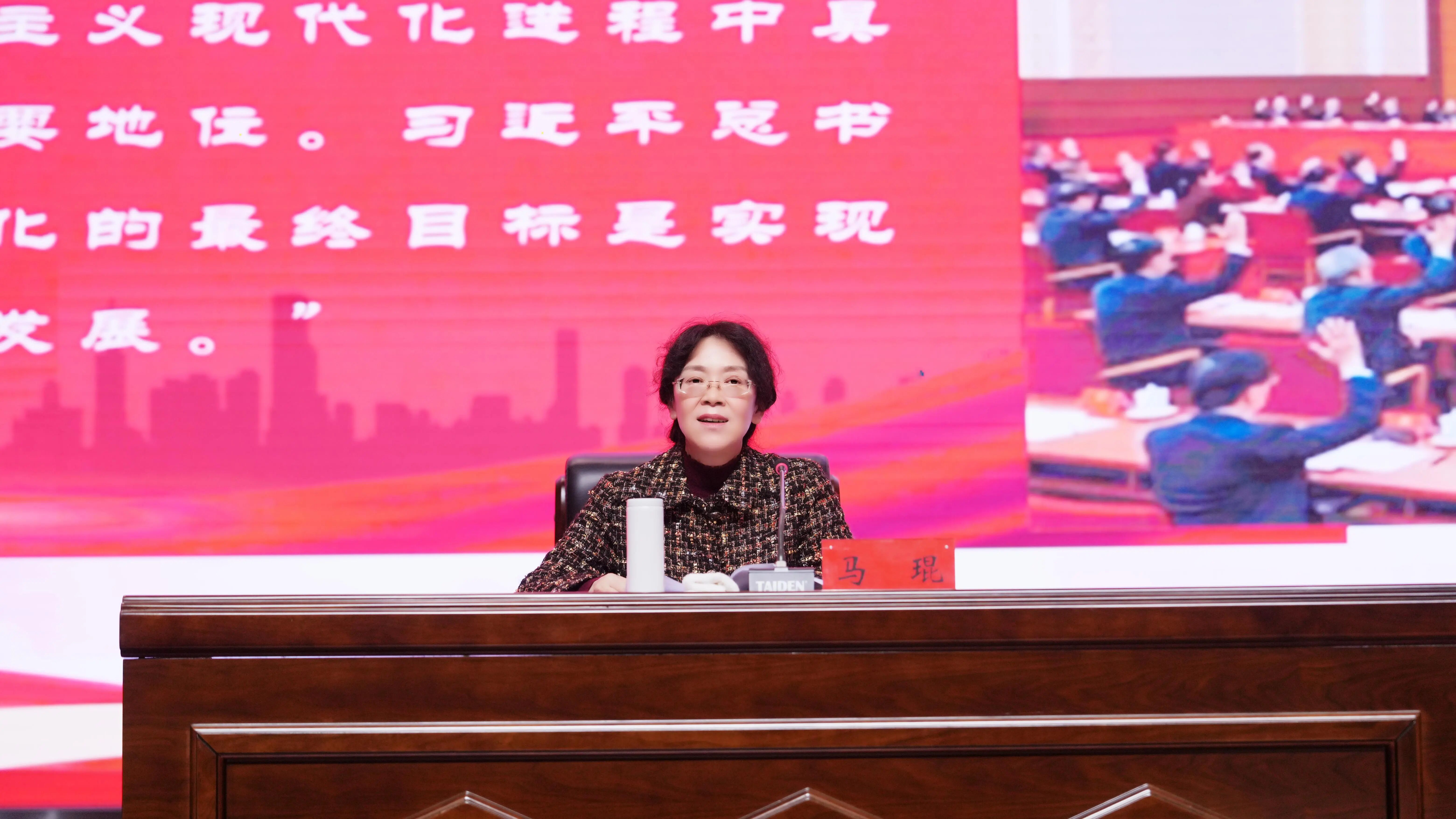 马琨紧密围绕学习贯彻党的二十届四中全会精神、习近平总书记在全球妇女峰会上的主旨讲话精神,从国际和国内两个维度全面回顾了男女平等基本国策的形成背景,结合新时代中国推进妇女全面发展的实践成就,系统介绍了男女平等基本国策在甘肃落地实施的生动实践和显著成效,并聚焦坚持党的全面领导、强化政府主体责任、发挥妇联组织作用、凝聚多部门合力、筑牢家庭根基等举措路径,深刻阐释了男女平等基本国策的时代内涵与实践要求。