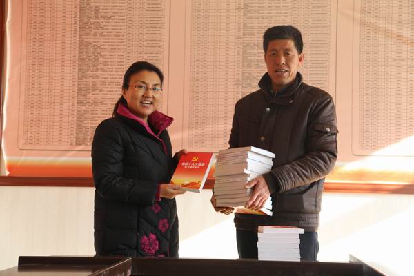 12月18日,白银市妇联党组书记、主席杜汉杰一行深入到帮扶贫困村——会宁县韩集镇袁咀村宣讲党的十九大精神,袁咀村两委班子成员、部分党员代表参加了宣讲会。