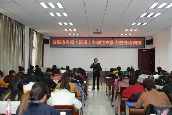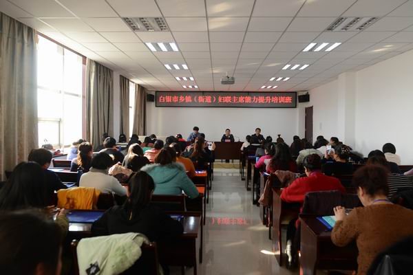 为深入贯彻落实党的十九大精神,进一步提高新任乡镇(街道)妇联主席履职能力,更好地发挥妇联组织服务大局、服务妇女的积极作用,12月20日至21日,白银市妇联在市委党校举办了全市乡镇(街道)妇联主席能力提升培训班。来自全市78个乡镇(街道)的妇联主席,市、县妇联干部共100余人参加培训。
