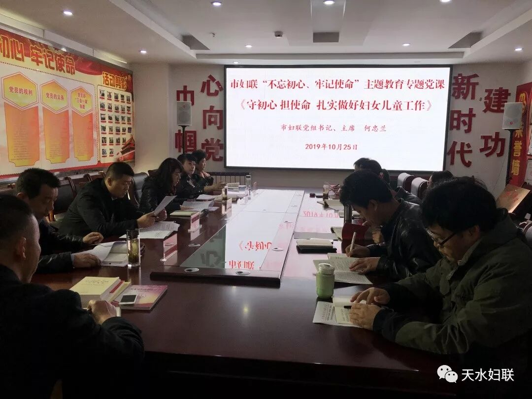 10月25日上午9点,市妇联召开“不忘初心、牢记使命”主题教育班子成员对照党章党规找差距专题会议,并开展了主要领导讲专题党课活动。市妇联党组书记、主席何忠兰主持会议并作点评,市妇联全体党员干部参加会议,市委主题教育第三巡回指导组赵亚平出席指导会议。