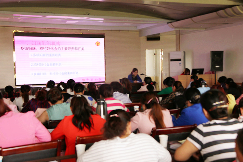 培训由县妇联主席张彩琴主讲,主要从妇联组织机构、当前妇联工作的主要任务、群团工作的重大变革、基层妇女工作者应具备的能力等方面进行了业务辅导,她要求各级妇女干部要加强政治、经济、领导科学等方面的理论学习,在妇女工作理论、业务和观念更新、素质提升、社交礼仪等多方面得到教育和培训,在学习和实践中得到锻炼和提高,通过学习努力成为视野宽阔、胸怀宽广、知识宽博、勤于创业、敢于创新、善于创优的基层妇女干部,为全县妇女儿童事业发展实现新跨越贡献巾帼力量!
